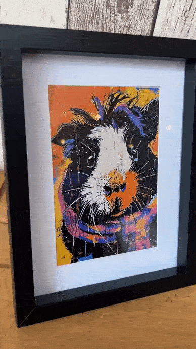 - After the printing process, our team conducts a meticulous quality check to ensure the printed artwork aligns with our standards and faithfully captures the essence of your pet.